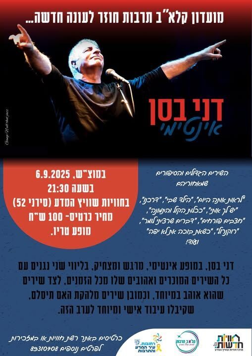 חוויות שוויץ המדע ברחובות משיקים: פעילות "קל"אב תרבות" חדשה תיפתח במופע חגיגי של הזמר דני בסן מוצ"ש 6/9