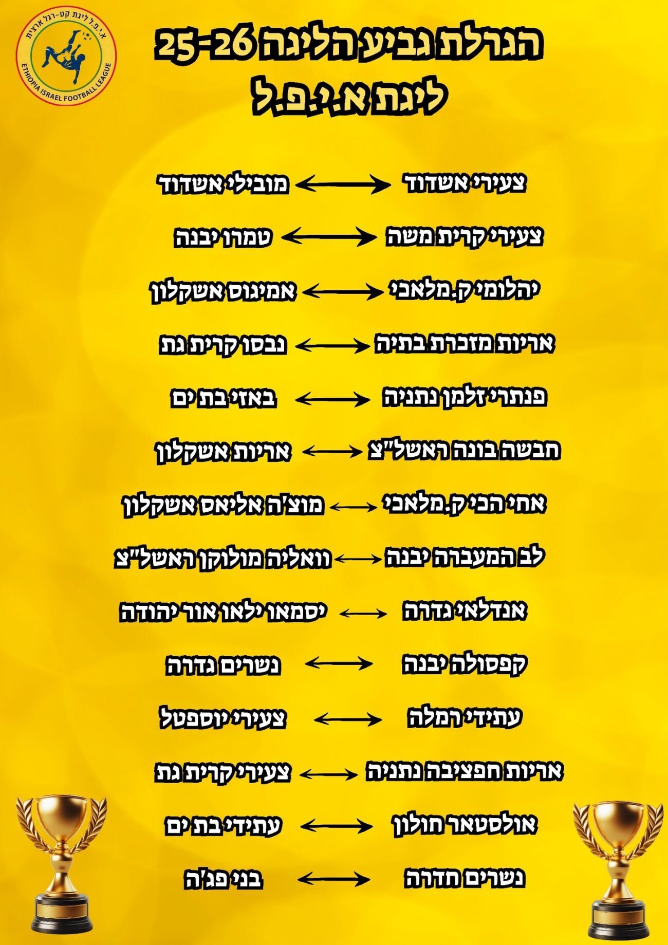ליגת א.י.פ.ל פותחת עונה: התאריך הרשמי נקבע ל-6 בספטמבר 2025, בה יקחו חלק קבוצות מרחובות, יבנה, מזכרת בתיה, ראשון לציון, פתח תקווה, גדרה, בת ים וחולון