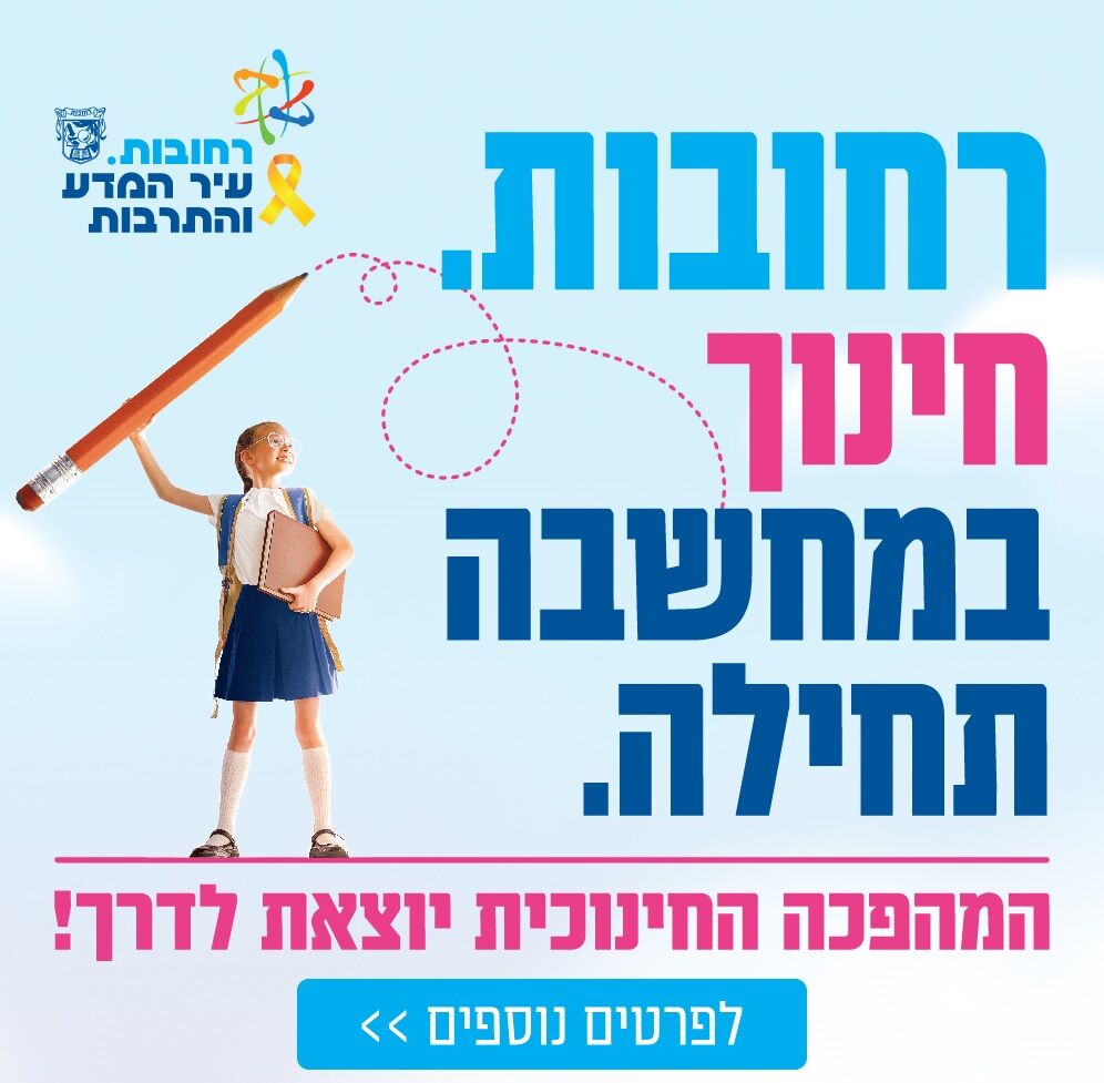 בשעה טובה, ולאחר חודשים של עבודה מאומצת ומעורבות ציבורית רחבה, עיריית רחובות משיקה את תכנית האב לחינוך - "רחובות. חינוך במחשבה תחילה" - אשר שמה דגש על קידום מצוינות, חדשנות, הוגנות ופיתוח חוסן אישי, תוך הקניית כישורי חיים המתאימים לעידן החדש ומשקפת חזון חינוכי מקיף שילווה את מערכת החינוך העירונית בעשור הקרוב.