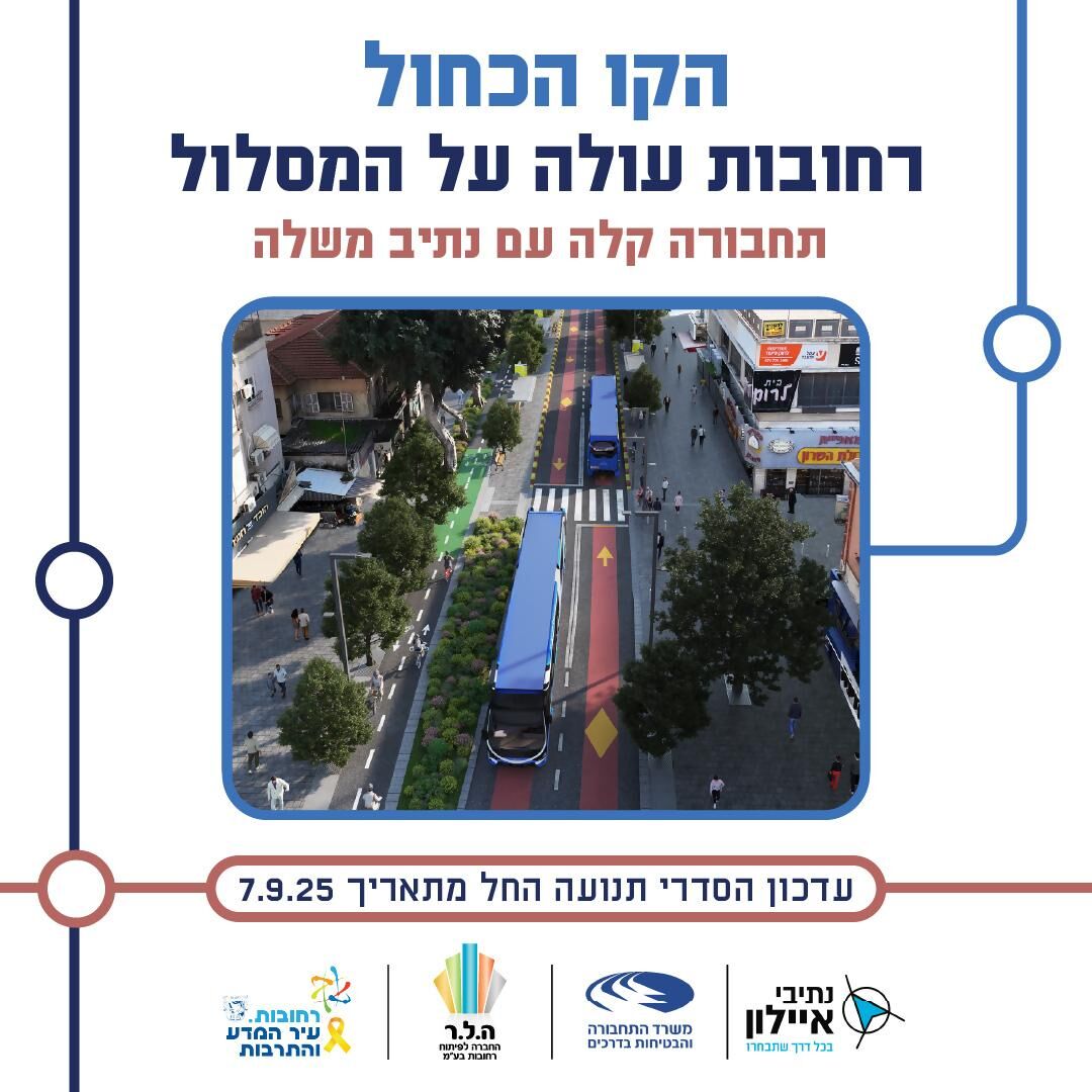 ייתכנו שינויים בתחנות האוטובוס ובמסלולי הקווים. לפרטים נוספים ניתן לפנות למוקד המידע של משרד התחבורה בטלפון 4515 *.