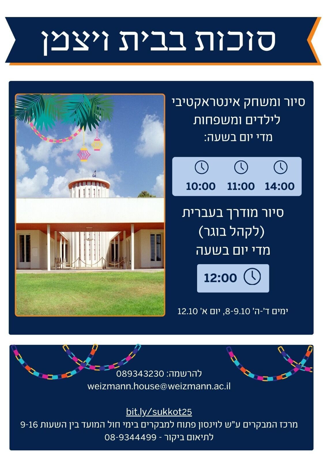 אושפיזין בבית ויצמן: במהלך חול המועד סוכות יתקיימו סיורים ומשחקים אינטראקטיביים למשפחות ולקהל הבוגר