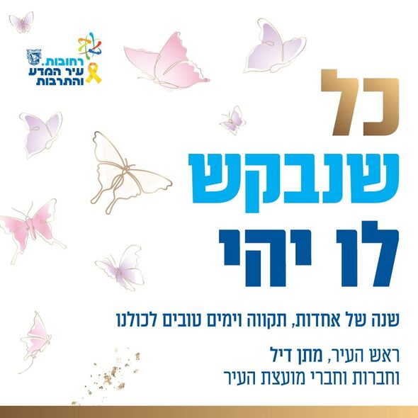 ראש עיריית רחובות מתן דיל, חברי וחברות מועצת העיר מאחלים שנה טובה לכל תושבי רחובות