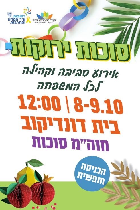 עיריית רחובות והחברה העירונית מזמינות את התושבות והתושבים לחגיגת סוכות ירוקות - יומיים של חוויה משפחתית בסימן קיימות ואיכות הסביבה.