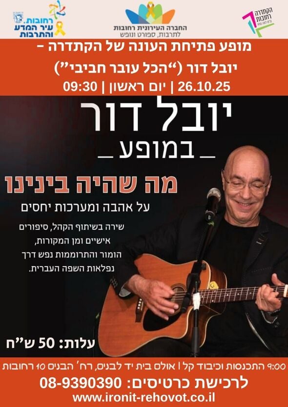 מופע פתיחת העונה בקתדרה רחובות: יובל דור ("הכל עובר חביבי") במופע "מה שהיה בינינו" על אהבה ומערכות יחסים יתקיים ב-26.10.25