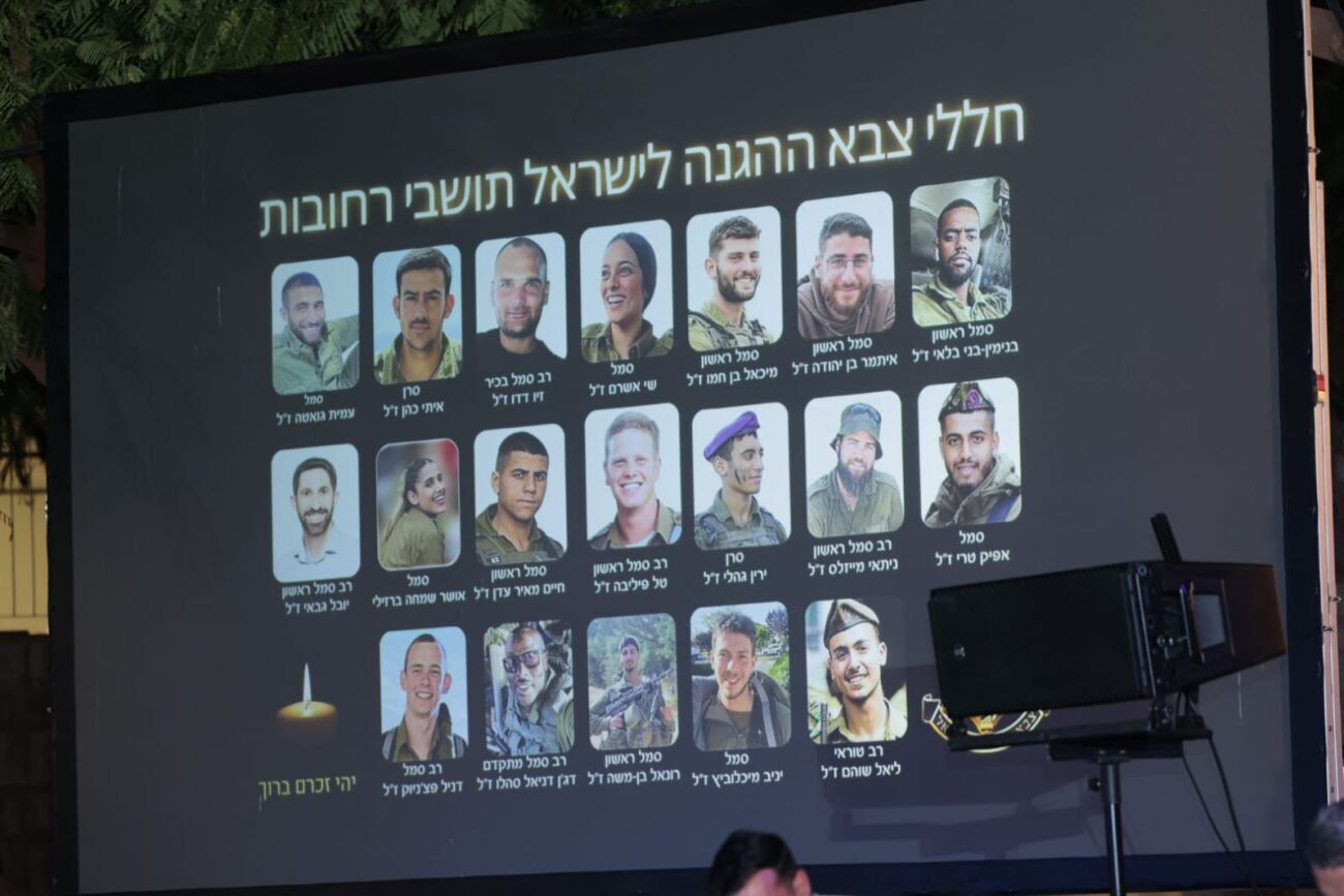 הטקס נפתח בדקת דומייה ובאמירת קדיש מפי אבי טרי, אביו של סמ״ל אפיק טרי ז״ל, שנפל בקרב בחאן יונס. את נרות הזיכרון הדליקו רז מיכלוביץ', אביו של סמ"ל יניב מיכלוביץ' ז"ל, ושירה גהלי, אמו של סגן ירין גהלי ז״ל, לזכר חללי מלחמת חרבות ברזל; יעל כהן, מובילת מטה משפחות החטופים רחובות, לשבים משבי החמאס; איש המילואים רס"ר אבירם ג'רפי וגברת ליאת מורגן, נציגת פורום המילואימניקים ברחובות, הדליקו נר לשלום החיילים; ותיקי ברזילי, אמה של התצפיתנית סמ״ל אושר שמחה ברזילי ז״ל, הדליקה נר לאחדות ושלום בין אזרחי ישראל.