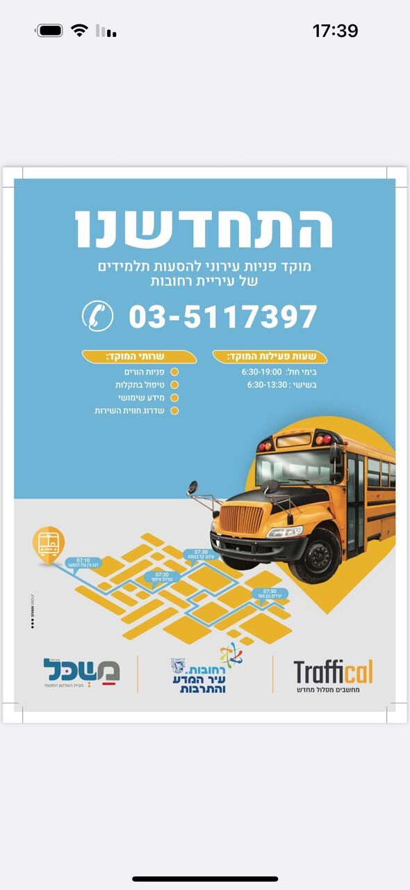 עיריית רחובות השיקה מוקד טלפוני ייעודי חדש לטיפול בפניות הורים בנושא הסעות תלמידים