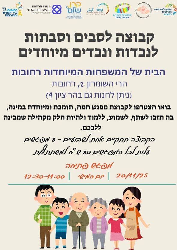 יוזמה חדשה ברחובות: קבוצת תמיכה לסבים וסבתות לנכדים עם צרכים מיוחדים תיפתח ב-20.11.25