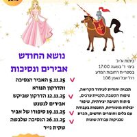 רשת "חוויות" מזמינה את ילדי העיר רחובות למפגש סיפור ויצירה בנושא אבירים ונסיכות. המפגש יתקיים בספריית "פסגת המדע" ביום רביעי, 19 בנובמבר 2025, בשעה 17:00.