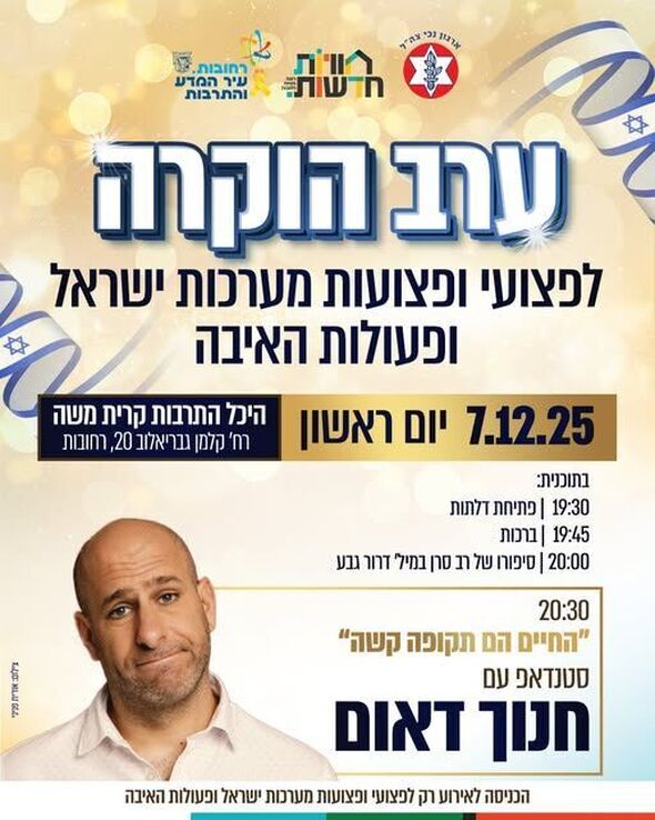 רחובות: ערב הוקרה לפצועי מערכות ישראל ופעולות האיבה יתקיים חוויות קריית משה ב-7.12 בהשתתפות חנוך דאום ודרור גבע