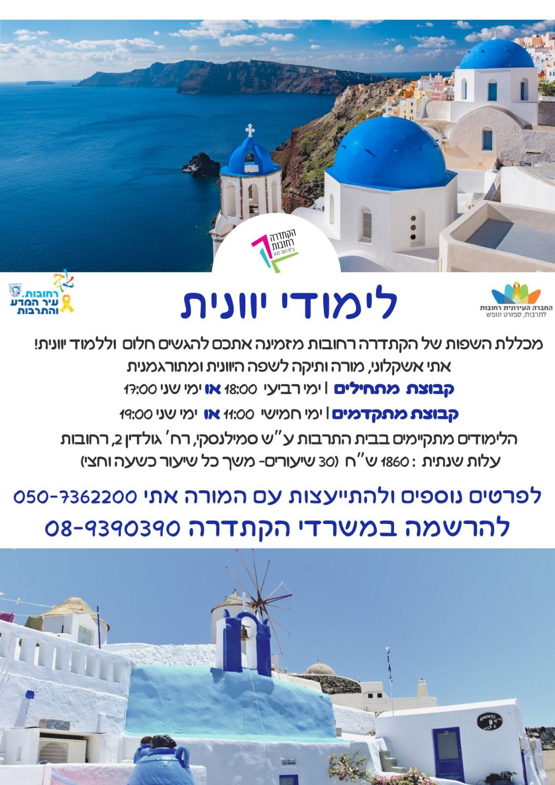 בעקבות הביקוש: נפתחו קבוצות לימוד חדשות לשפה היוונית ברמות מתחילים ומתקדמים עם המורה אתי אשקלוני בבית התרבות סמילנסקי ברחובות