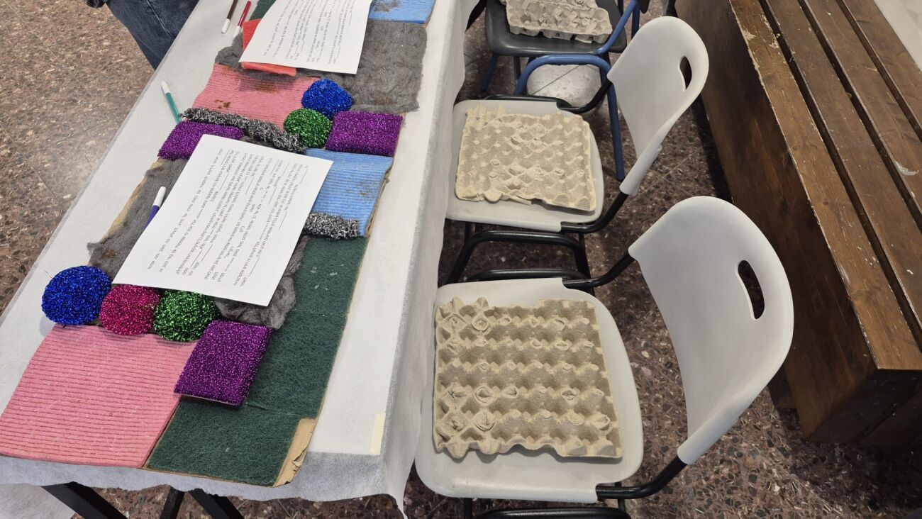 בעמדה שהדגימה קשיים בוויסות חושי, נדרשו המשתתפים להשלים טקסט מתוך מחסן מילים, בעודם נשענים על משטח צמר ויושבים על קרטוני ביצים. התנסות זו נועדה להסביר את הקושי בביצוע משימה קוגניטיבית כאשר האדם חש חוסר נוחות פיזית במגע עם טקסטורות שונות.