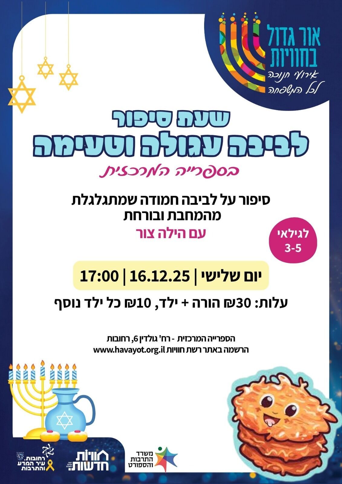 רשת חוויות מזמינה את הציבור הרחב לחגוג את חג החנוכה בספריות ברחבי העיר רחובות. לכבוד החג, יתקיימו בספריות שפע של אירועים ופעילויות המיועדים לילדים.