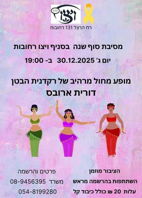 מסיבת סוף שנה בויצו רחובות: מופע מחול של רקדנית הבטן דורית ארובס יתקיים ביום שלישי ה-30.12