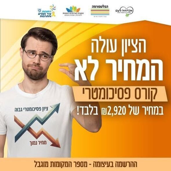 הפלטפורמה רחובות ואקדמיה לעם מציעים קורס פסיכומטרי הכולל ליווי אישי וחומרי לימוד מתקדמים בעלות של 2,920 ש"ח