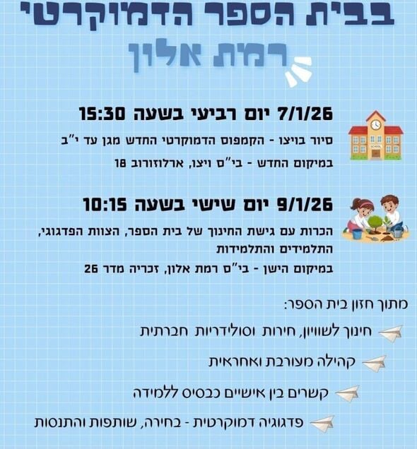 אורחבי"ס רמת אלון לא עובר, הוא נסגר ותלמידיו מפוזרים בין שני בתי ספר.05.01.26 17:32 תגובה