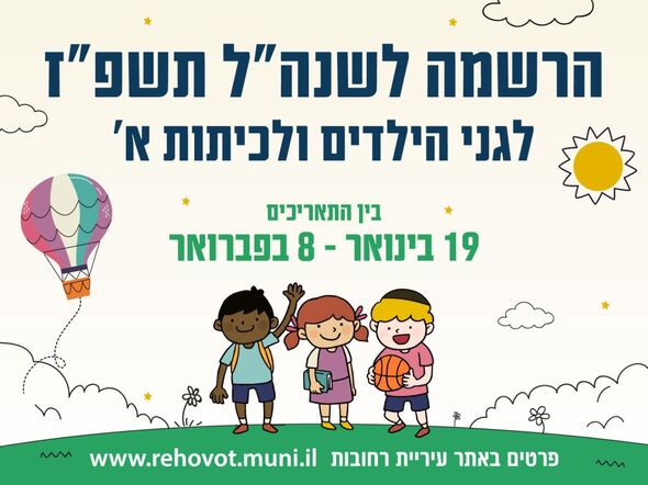 רחובות: ההרשמה לגני הילדים ולכיתות א' לשנת הלימודים תשפ"ז תיפתח ביום שני 19.1