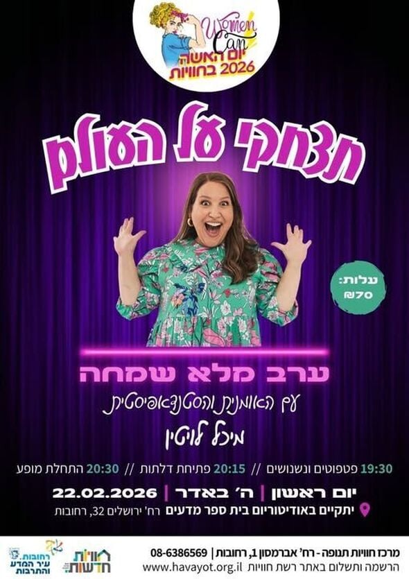 מרכז "חוויות תנופה" יציין את יום האישה במופע חגיגי של הסטנדאפיסטית מיכל לויטין. האירוע צפוי להתקיים ביום ראשון, ה' באדר, ה-22.2.26.
