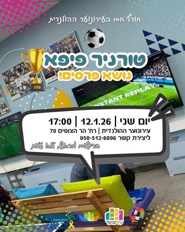 טורניר פיפ"א נושא פרסים יתקיים בעירונוער ההולנדית ברחובות ביום שני ה-12.1.26