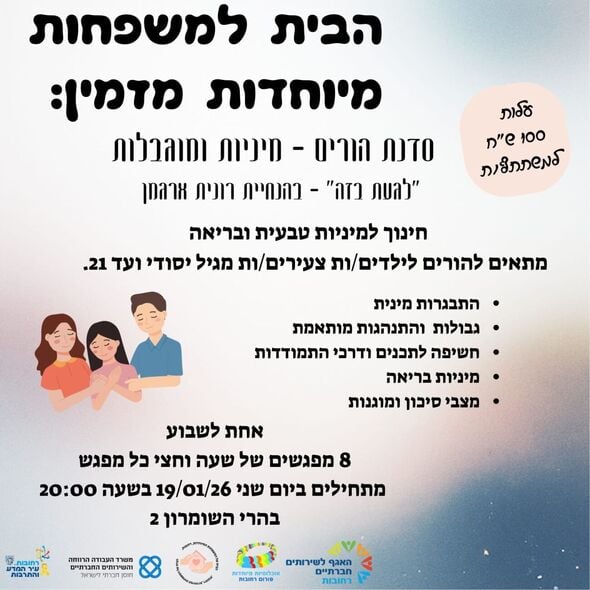 סדנת הורים בנושא חינוך למיניות בריאה לילדים ונוער עם צרכים מיוחדים תיפתח ב-19/1/26 בבית למשפחות מיוחדות