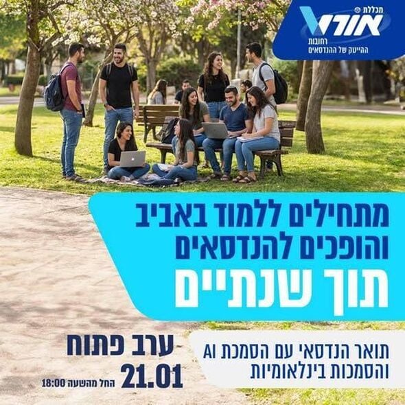 הערב הפתוח יתקיים בתאריך 21.01 בשעה 18:00. במסגרת האירוע, יוצגו מסלולי הלימוד לתואר הנדסאי הכוללים הסמכת AI (בינה מלאכותית) והסמכות בינלאומיות נוספות.