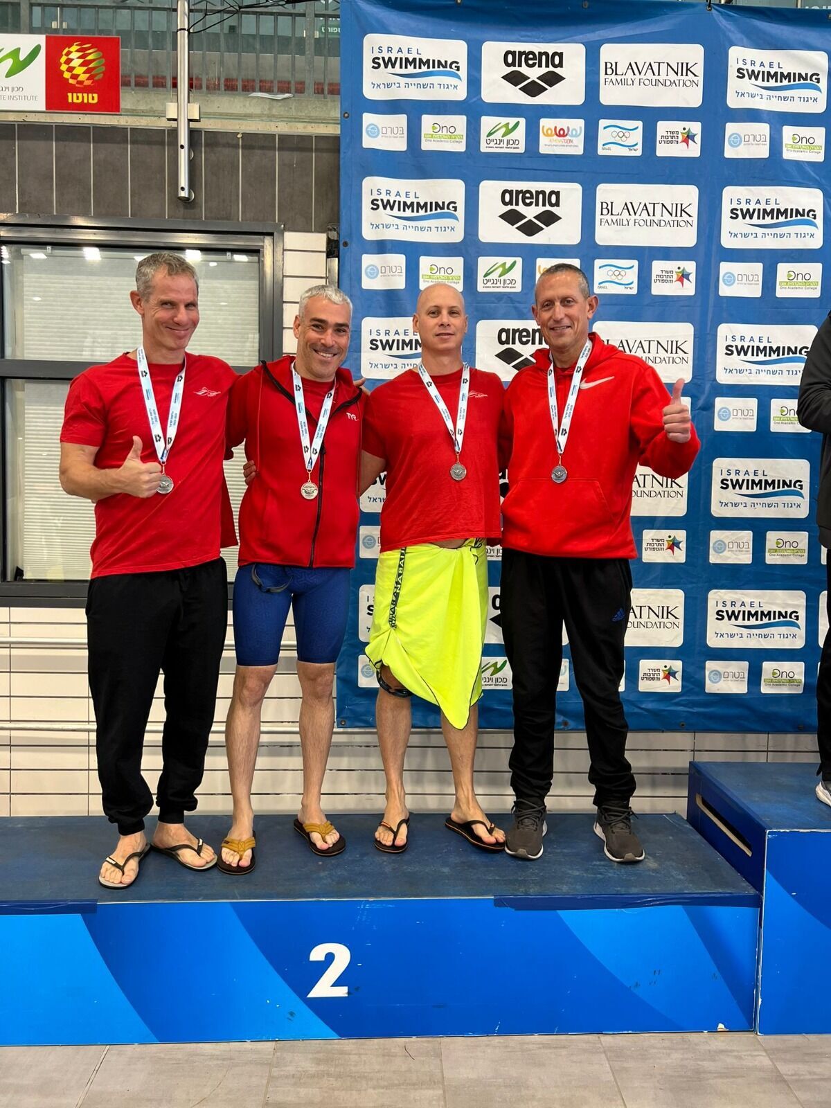 - לוטם קלמנסון (מאמן הקבוצה): כסף 200 מ.א, כסף 200 גב, ארד 100 חזה, מקום 6 ב-100 מ.א.