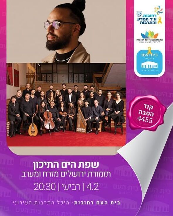 בית העם רחובות - היכל התרבות העירוני יארח את תזמורת ירושלים מזרח ומערב למופע המשותף עם הזמר בניה ברבי, תחת הכותרת "שפת הים התיכון". המופע צפוי להפגיש בין אחד הקולות האהובים בישראל לבין התזמורת המחברת תרבויות וצלילים, ליצירת ערב מוזיקלי עוצמתי ומרגש.