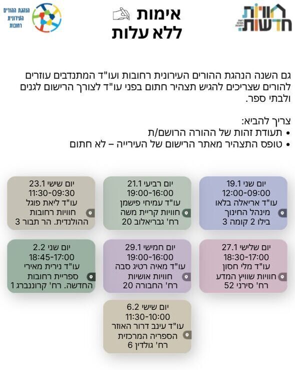 הנהגת ההורים ברחובות תעניק גם השנה שירות ללא עלות להורים הזקוקים לחתימת עו"ד לצורך תצהיר הרישום למוסדות החינוך