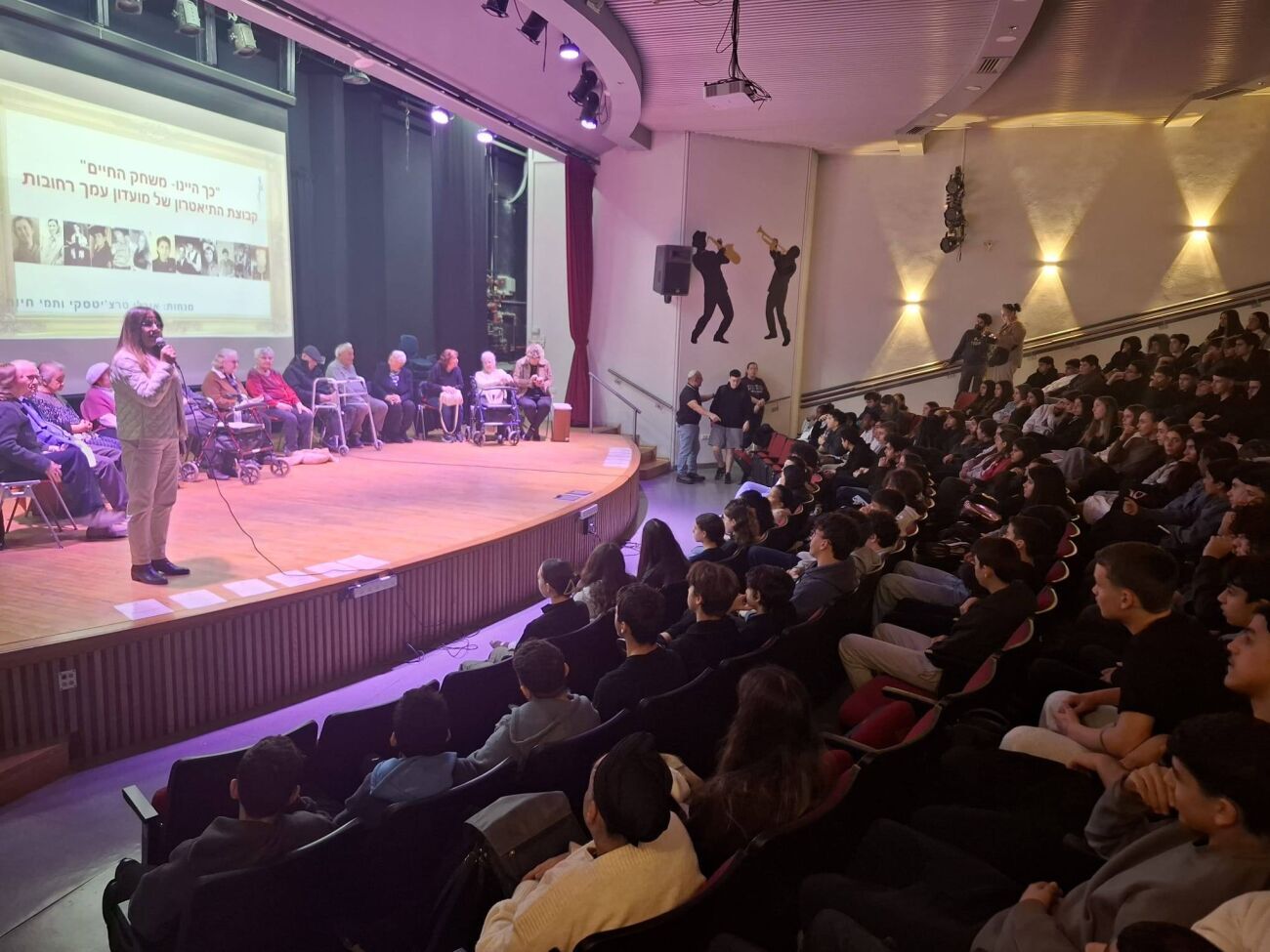 במסגרת המופע, שנערך בפני תלמידי שכבה ט', התארחו שורדי שואה ובני הדור השני אשר חלקו את סיפוריהם האישיים. העדויות נגעו בקשיים, ברעב ובגעגועים העזים להורים ולמשפחה בתקופת השואה, והמשיכו בתיאור הדרך באונייה לארץ ישראל ותהליך התקומה בארץ.