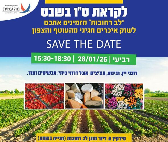 לקראת ט"ו בשבט: שוק איכרים מיוחד מהעוטף והצפון יתקיים בדיור מוגן "לב רחובות" ביום רביעי ה-28.1