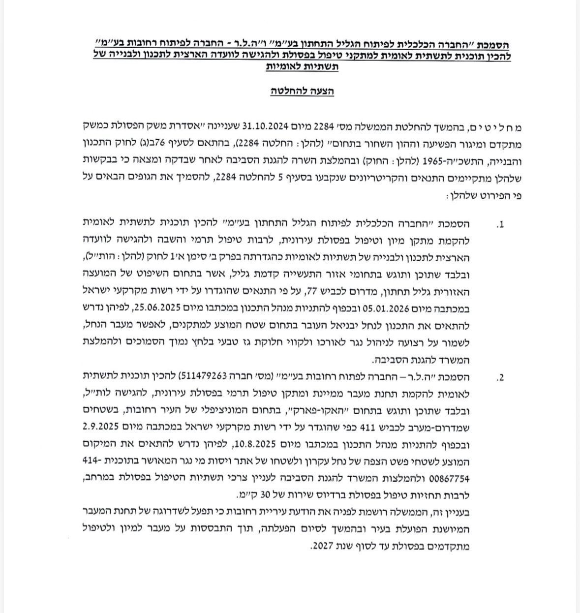 במסגרת ההחלטה, הוסמכו החברות הכלכליות לפעול כגופים מתכננים לצורך גיבוש תוכנית תשתית לאומית למתקני טיפול בפסולת. התוכנית תבחן את הצרכים העתידיים של משק הפסולת, תמפה אזורי עדיפות ותציע פריסה מיטבית של מתקני קצה - לרבות מתקני מיחזור, מיון והשבת פסולת לאנרגיה - תוך איזון בין שיקולים סביבתיים, תכנוניים וכלכליים.