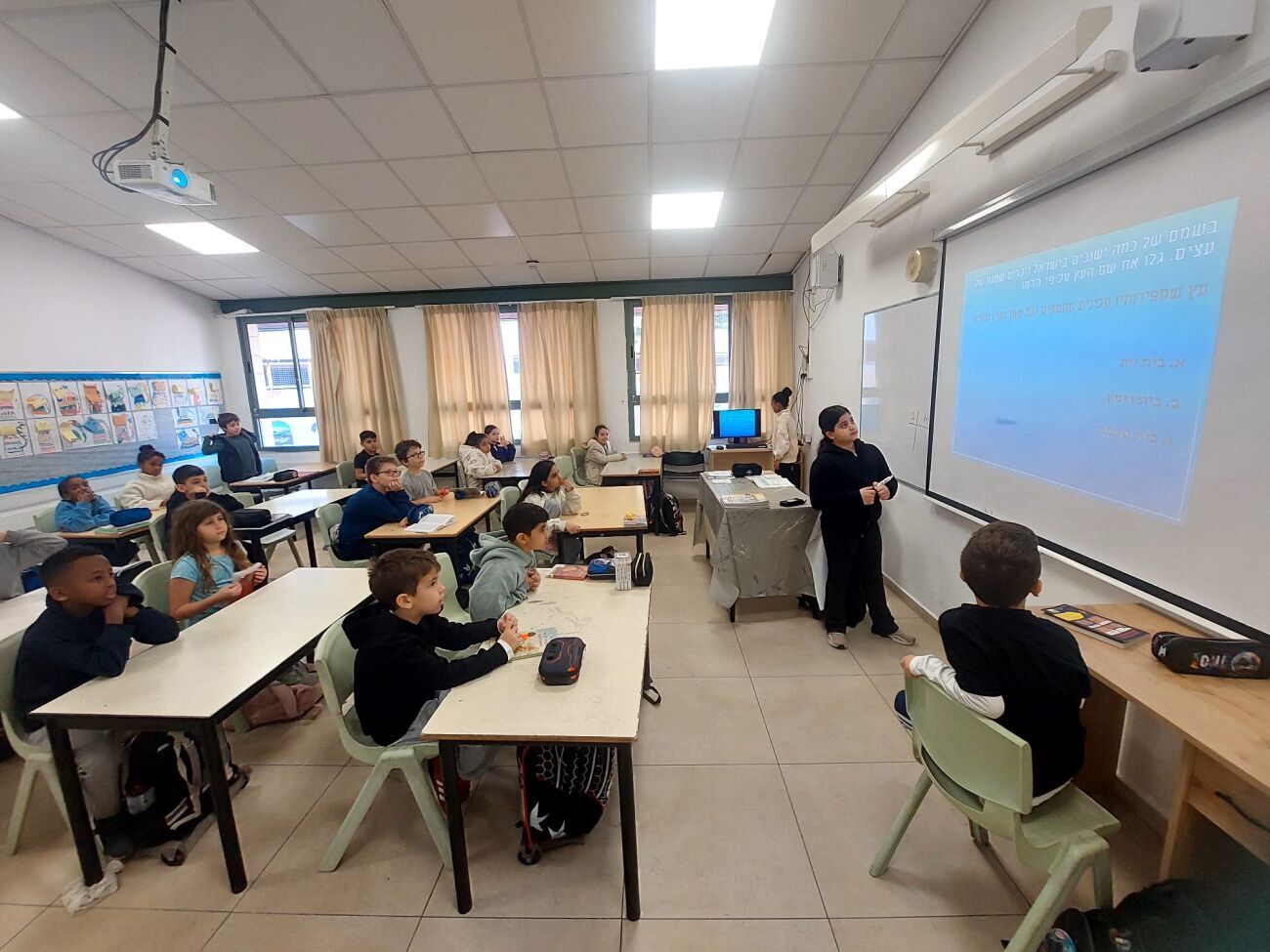 בבית הספר נעם הצבי בנים קיימו סדר ט"ו בשבט חגיגי שכלל שיח ערכי על הקשר לאדמה ולפירותיה, לצד סיפורים ושירים. פעילות חינוכית נוספת נרשמה בבית הספר בן גוריון, שם הובילו קבוצות המנהיגות הירוקה ומנהיגות הספרייה הסברים על סמלי החג ופעילויות יצירה.