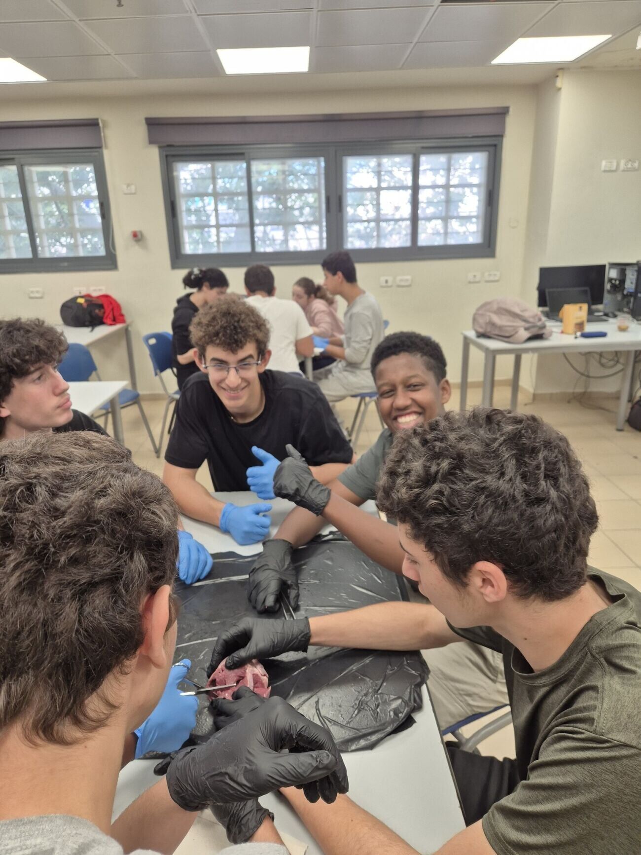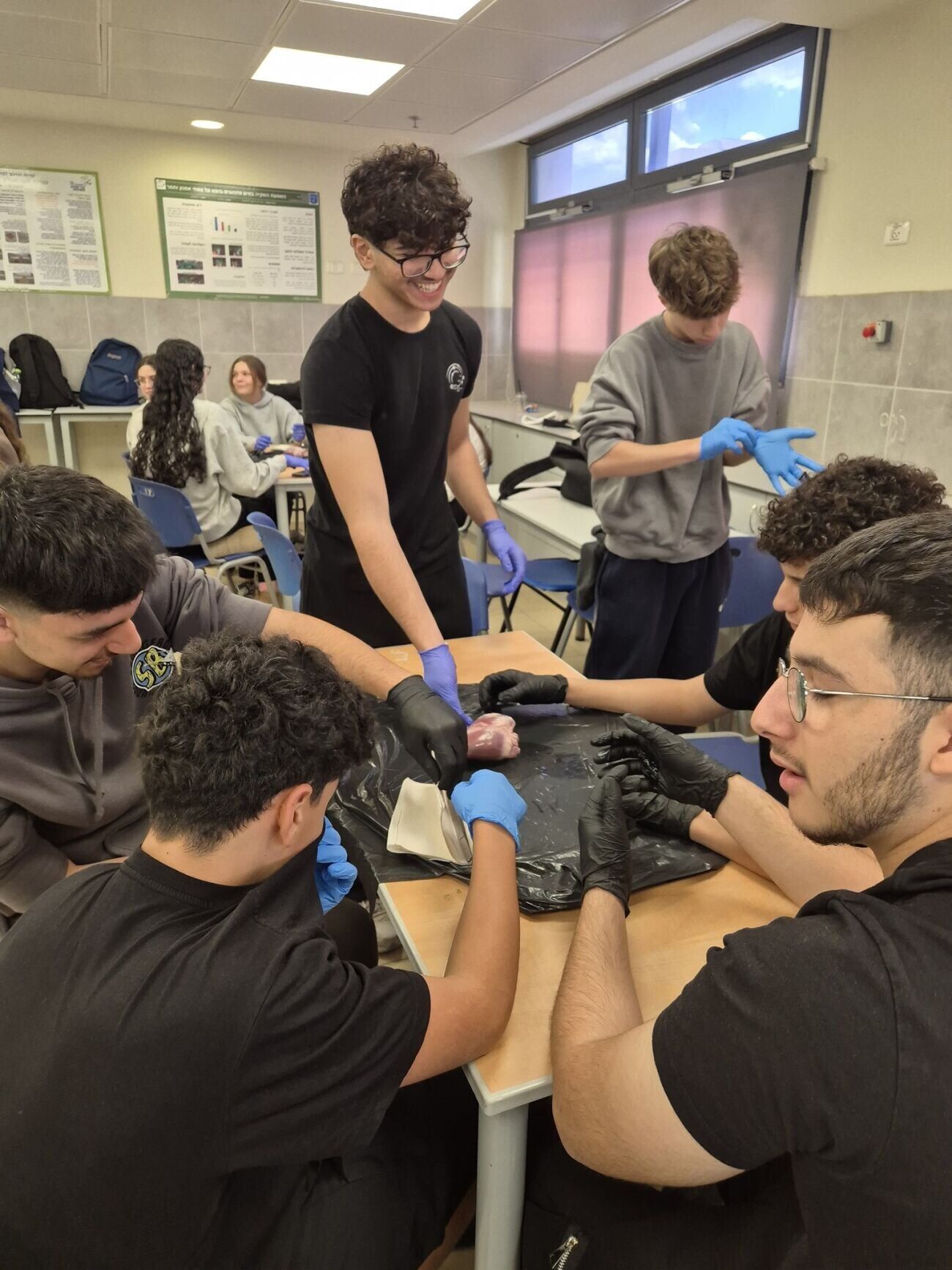 במהלך שיעור מדעים מעשי, השתתפו התלמידים בפעילות של ניתוח לב וריאות. הפעילות נועדה להמחיש לתלמידים באופן ויזואלי ומוחשי את המבנים האנטומיים עליהם למדו באופן תיאורטי בכיתה.