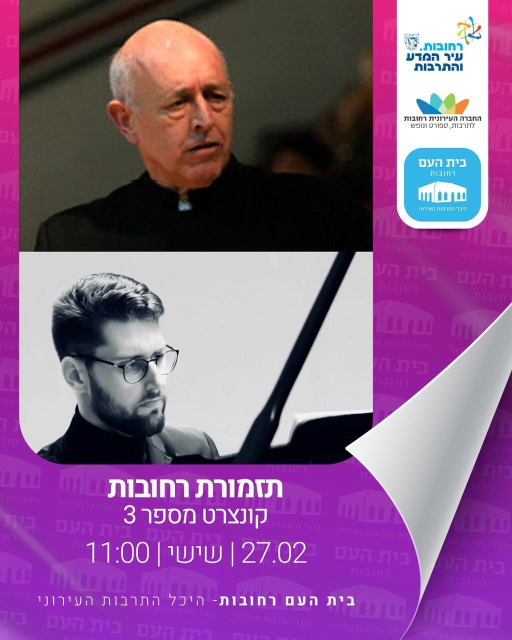האירוע יתקיים בבית העם רחובות – היכל התרבות העירוני, רחוב יעקב 48, בשעה 11:00. לפרטים נוספים ולרכישת כרטיסים ניתן לחייג לטלפון 08-9232200 או לבקר בקישור הבא: לחצו כאן להזמנה.