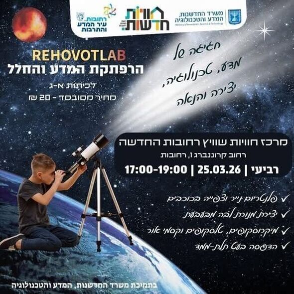 הרפתקת המדע והחלל בחוויות שוויץ רחובות החדשה: פעילות מרתקת לילדי כיתות א'-ג' ב-25.03.2026