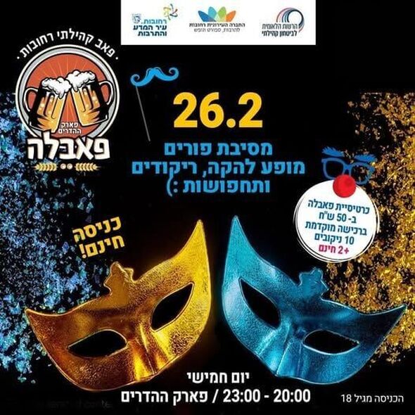 הפאב הקהילתי "פאבלה", הממוקם בפארק הדרים סמוך לאגם ברחובות, יערוך מסיבת פורים חגיגית לתושבי האזור. האירוע יתקיים ביום חמישי, 26 בפברואר, בין השעות 20:00 ל-23:00.
