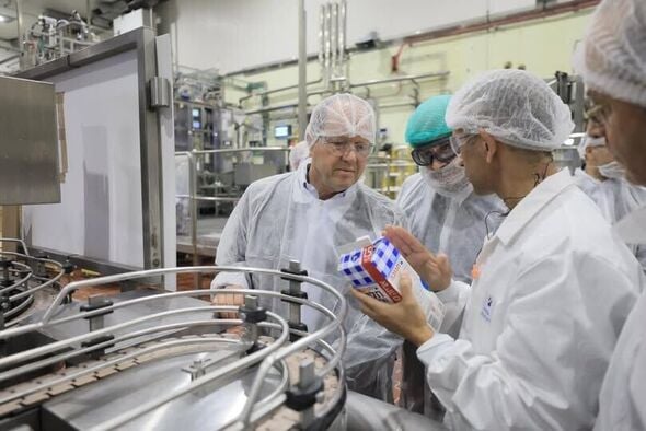 שר הכלכלה והתעשייה, ניר ברקת, סייר במחלבת תנובה ברחובות, על רקע יומו השלישי של מבצע "שאגת הארי".