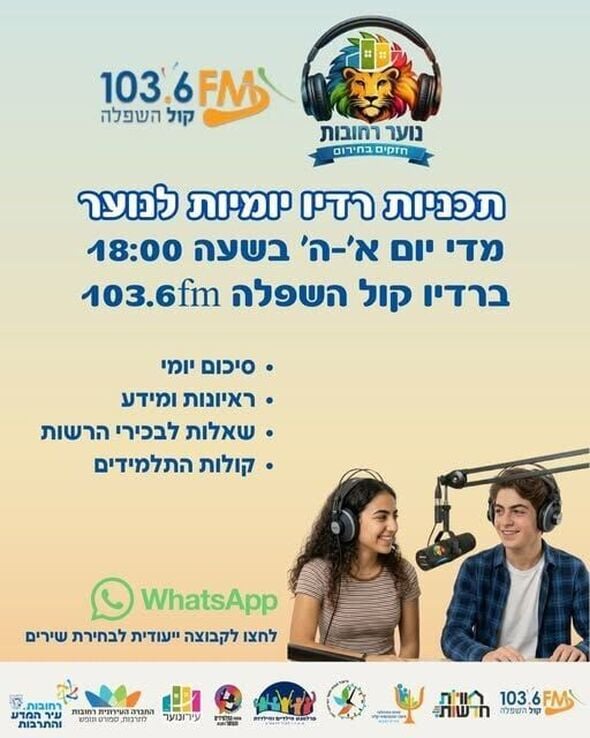 עירונוער רחובות יוזמים: תכנית רדיו יומית לנוער ברדיו קול השפלה 103.6fm