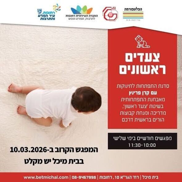 סדנת 'צעדים ראשונים' להתפתחות תינוקות והורים תתקיים בבית מיכל ברחובות ב-10.3