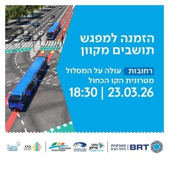 עיריית רחובות תקיים מפגש תושבים מקוון בנושא התקדמות פרויקט מטרונית הקו הכחול. המפגש, שייערך ביום שני, ה-23.3.26, בשעה 18:30, יעסוק במעבר לשלב העבודות הבא ויוצג בו סטטוס הפרויקט בעיר שמהווה חלק ממהפכה תחבורתית אזורית.