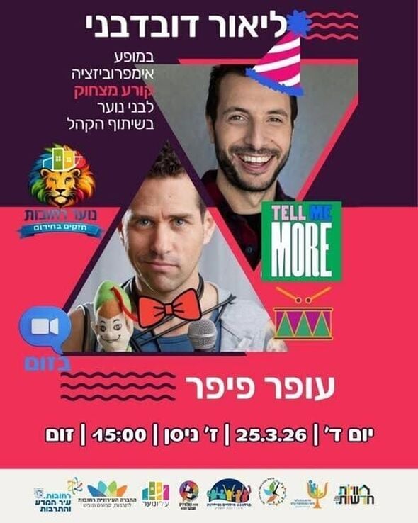 מופע סטנדאפ ואימפרוביזציה חינמי בזום לבני הנוער של רחובות - 25.3.2026
