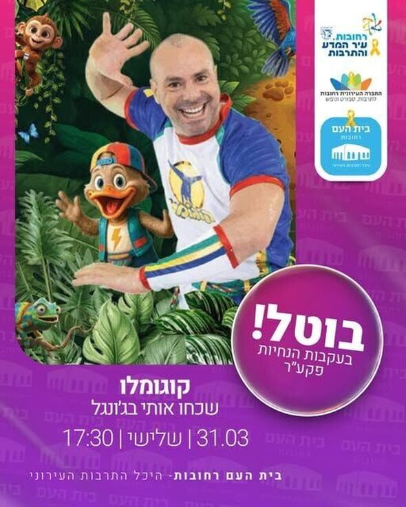 בעקבות הנחיות פיקוד העורף ולאור המצב הביטחוני, היכל התרבות העירוני "בית העם" ברחובות הודיע על ביטול מופע הילדים של קוגומלו, "שכחו אותי בג'ונגל". המופע תוכנן להתקיים מחר (שלישי, 31 במרץ) בשעה 17:30.