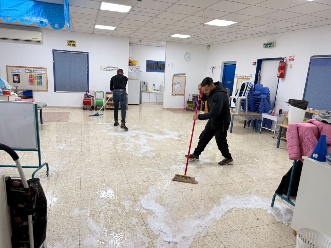 במסגרת ההיערכות, כפי שניתן לראות מתיעוד הפעילות, עובדי הניקיון שטפו ביסודיות את המסדרונות, כיתות הלימוד וחללי הלמידה, על מנת להבטיח סביבה נקייה וראויה עבור הילדים והצוותים החינוכיים עם חזרתם.