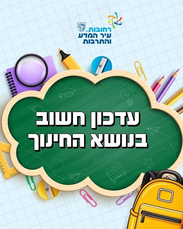 עיריית רחובות: נפתח הרישום המאוחר לגני הילדים ולבתי הספר היסודיים לקראת שנת הלימודים הבאה (12 עד 26 באפריל 2026)