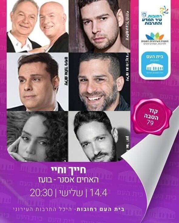 היכל התרבות בית העם ברחובות יארח ערב מחווה חגיגי ליצירותיו של הזמר והיוצר בועז שרעבי, תחת הכותרת "חייך וחיי", בהובלת האחים אסנר. המופע מציע חיבור מוזיקלי בין דורות ומעניק כבוד לאחד מהיוצרים הבולטים והאהובים בזמר העברי.
