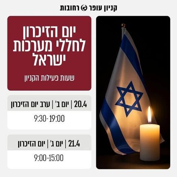 קניון עופר רחובות פרסם את שעות הפעילות המעודכנות של המתחם לרגל יום הזיכרון לחללי מערכות ישראל ונפגעי פעולות האיבה.