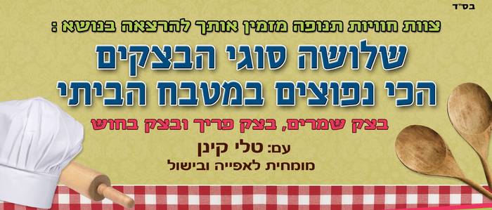 בהנחיית - טלי קינן מומחית לאפייה ובישול.