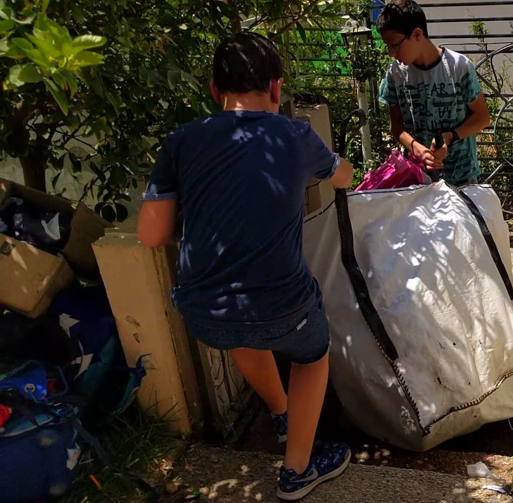 בנוסף לילקוטים הרבים התקבלו גם תרומות של ציוד לימודי כמו מחברות, עפרונות, מחדדים וכו', והמתנדבים הצעירים אליאב, איתמר ודניאל הוכבויים, הראל, מעיין ורעות שפיצר, אריה, אמיר ואפרת ורשבסקי הצטרפו אל ילדיה של גולדשטיין, אסף, מתן וסיון, שכבר מכירים את העבודה מהשנים הקודמות.