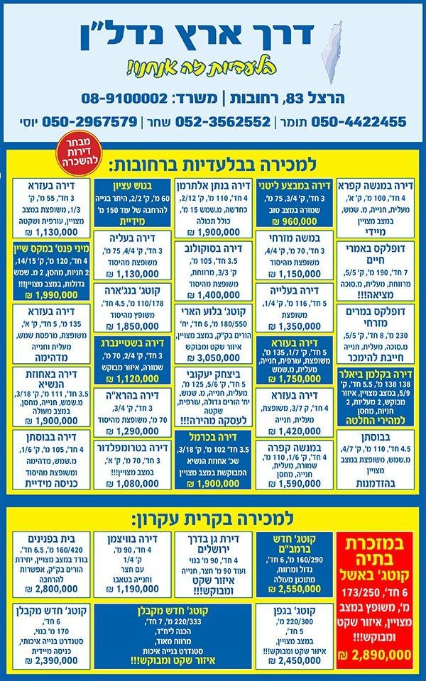 נדל"ן למכירה ברחובות בוואטסאפ