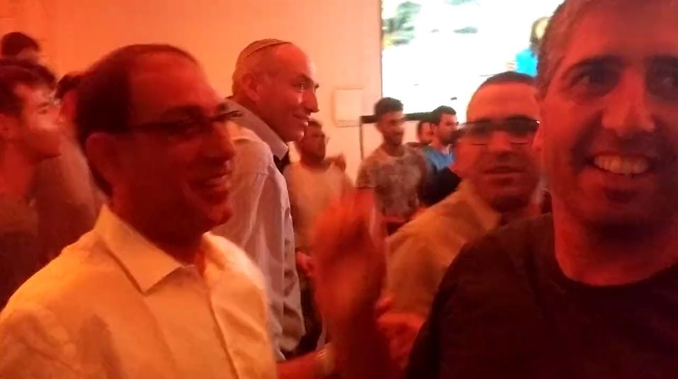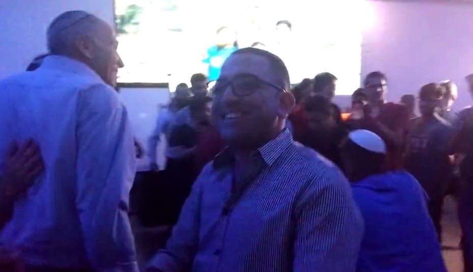 ח"כ הכנסת מוטי יוגב , חבר המועצה אמיתי כהן ותלמידי הקדם צבאי "שובו אחים" בקרית משה מרקידים ועושים שמח