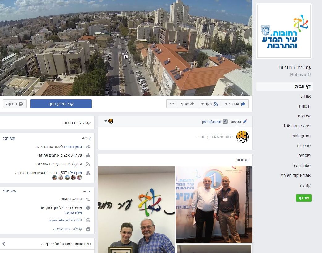 להלן לינק לדף הפייסבוק המשודרג של עיריית רחובות